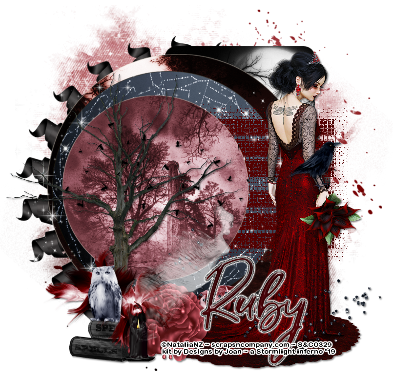 Reminiscent of a vampire queen, Adelle by NataliaNZ is a haunting beauty dressed in a floor length ruby gown overlaid with black lace that compliments her dragonfly tattoo, and matching ruby jewelry. She is a great fit for your Halloween tags, vampire-esque or otherwise, or just your all year-round gothic designs.