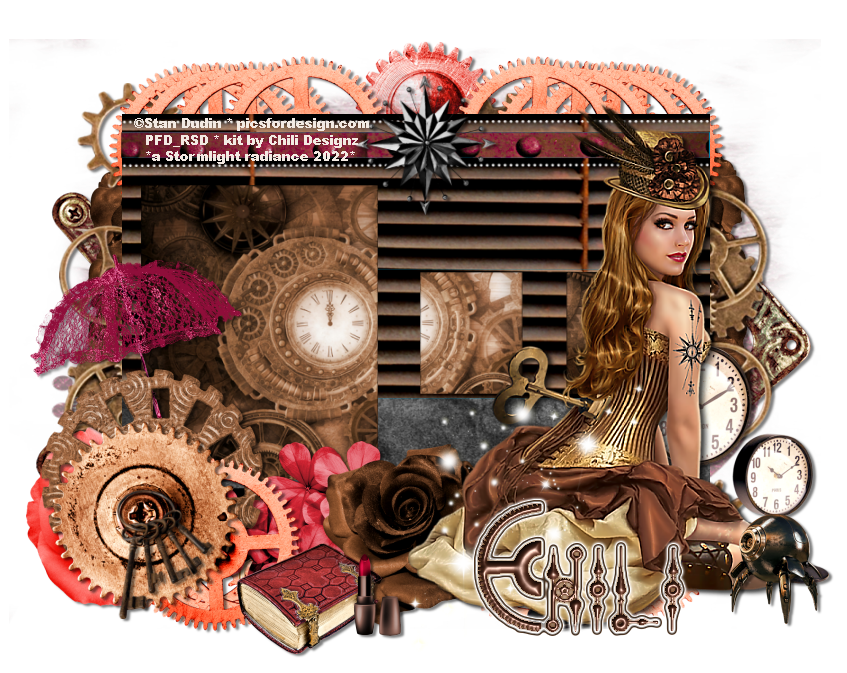 Chili Designz has an amazing kit for you steampunk lovers. Steampunk Umbrella has it all! This kit is designed to fit with a Danny Lee tube by the same name and is designed with a unique palette consisting of seafoam and rusted metallics, with accents of rose, black, dark brown and maroon. With 12 papers, 8 frames and 90 elements, all your steampunk needs will be met.