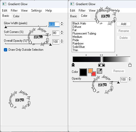 11. In your plugins menu, go to EyeCandy > Gradient Glow and apply the following settings: